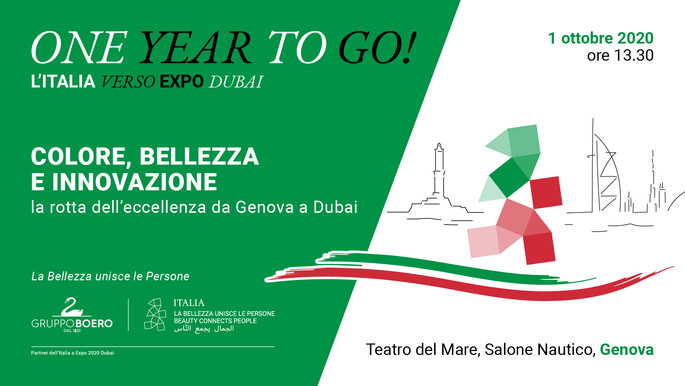 On 1 October 2020 at 13:30, It will be held the event "Color, beauty, Innovation. The route of excellence from Genoa to Dubai" and you can wacht it live on our Facebook fanpage!