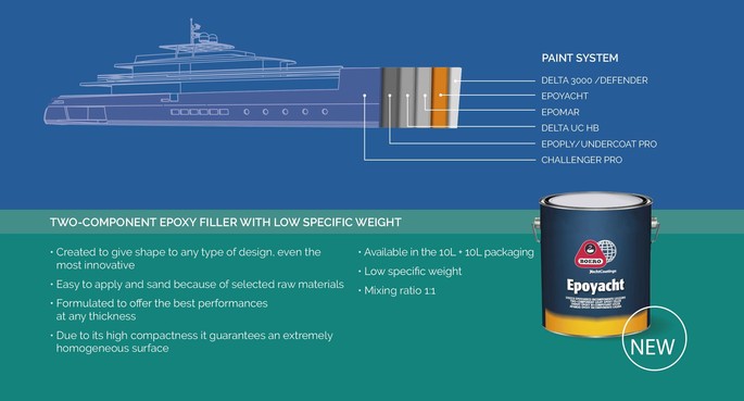 6 april jongst leden heeft Boero YachtCoatings de nieuwste twee-componenten epoxyplamuur, de Boero Epoyacht, gelanceerd. Deze epoxyplamuur is speciaal ontwikkeld voor de jachtbouw en superjachtbouw en heeft een laag soortelijk gewicht. De nieuwe Boero Epoyacht epoxyplamuur is geschikt voor elk type boot.